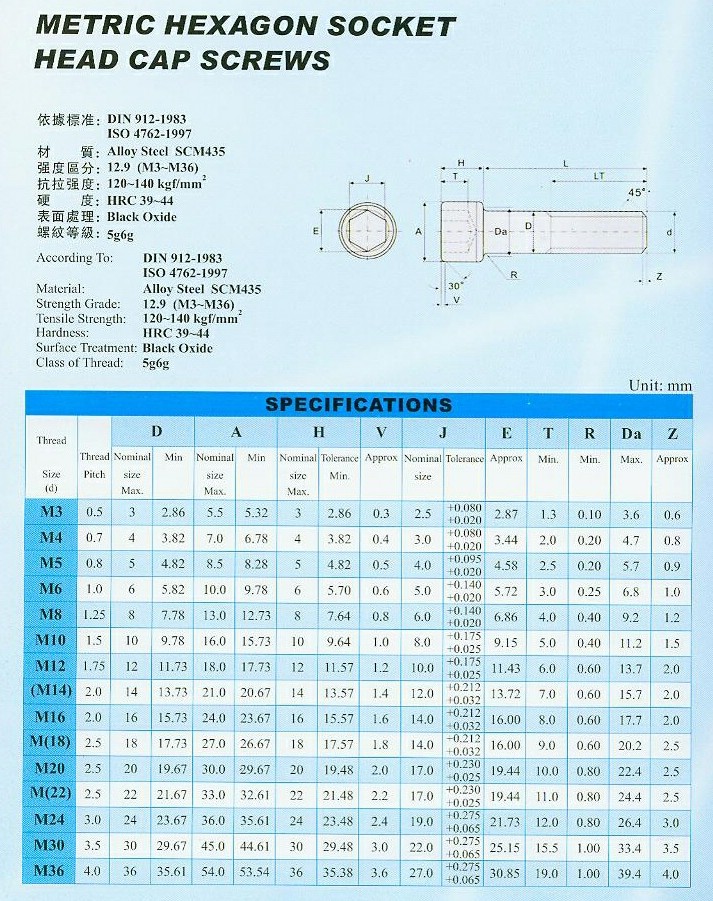 參考標(biāo)準(zhǔn):DIN912/ GB70/ ISO4762/ ANSI B18.3/ JISB1176