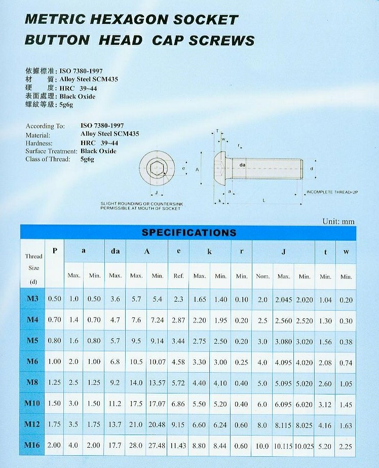 參考標(biāo)準(zhǔn):DIN7380/ ANSI B18.3