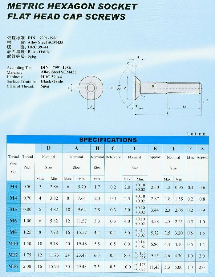 參考標(biāo)準(zhǔn):DIN7991/ ANSI B18.3