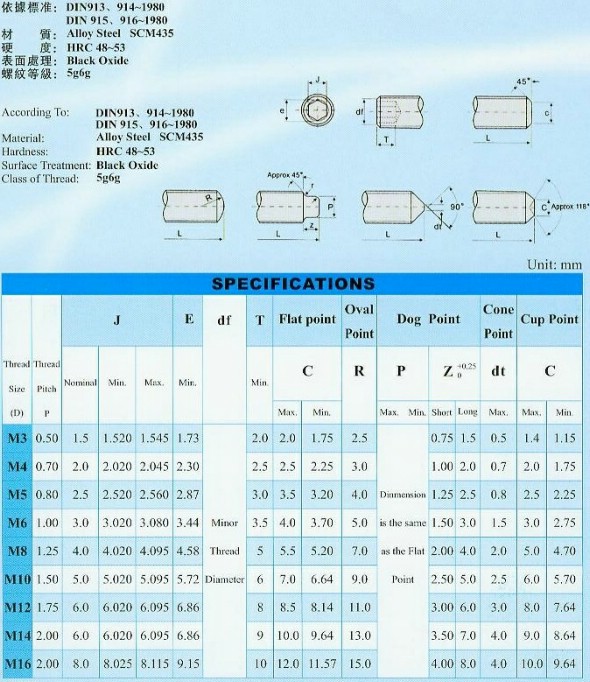 參考標(biāo)準(zhǔn):DIN913/DIN914/DIN915/DIN916