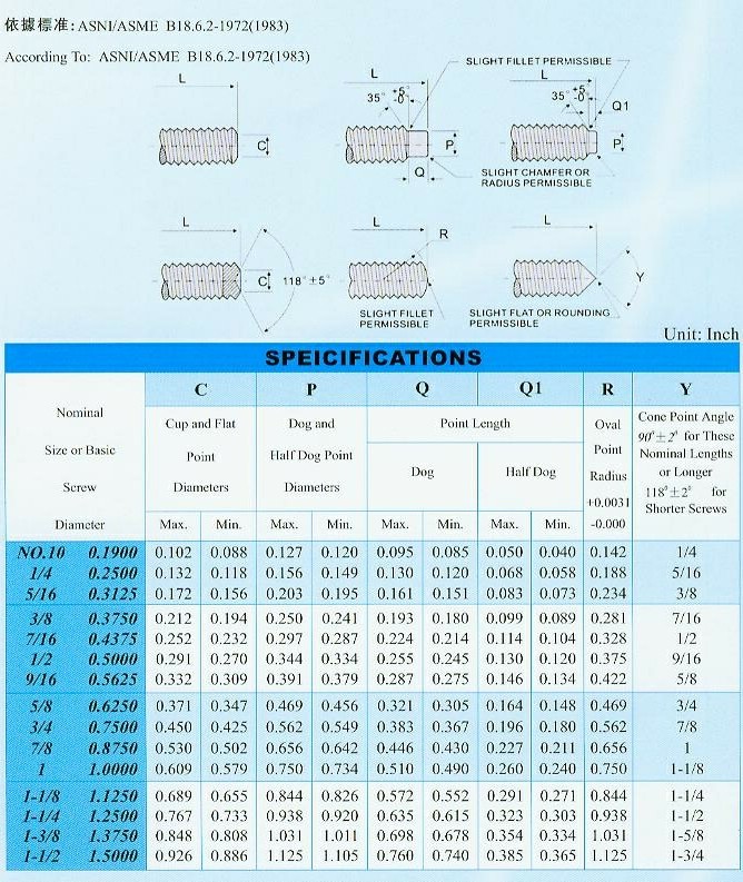 12.9級(jí)美制緊定螺絲(技術(shù)參數(shù))