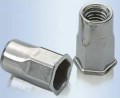 其型式與碳鋼的拉鉚螺母類似,包含有平頭不銹鋼拉鉚螺母,(大。┏令^不銹鋼拉鉚螺母,平頭六角不銹鋼拉鉚螺母及全六角拉鉚螺母,以上型式又分為通孔及盲孔型。
