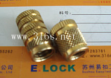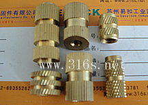 應(yīng)于熱熔注塑的銅螺母,一般表面采用拉直紋花或網(wǎng)紋花或斜紋花.埋置于注塑件后防止松動(dòng).